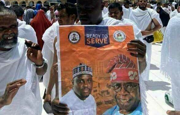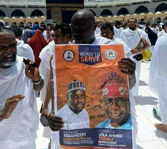 An eyewitness identified as Murtala Adamu Jega who spoke with SaharaReporters said, “I’m a witness; I saw them lift Bola Tinubu’s posters at the holy Kaaba.