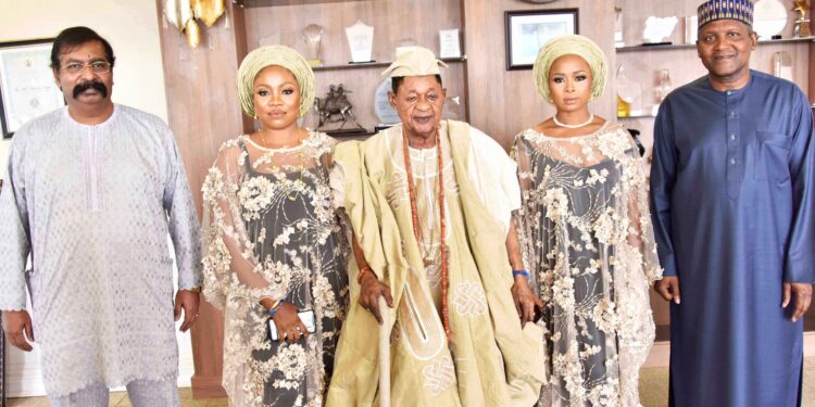 The Alaafin and his entourage were received by Dangote at the Ikoyi global headquarters of the conglomerate together with the Group Executive Director of the Company, Chief Devakuma Edwin, who told the monarch how the company had been contributing to the engagement of youths in parts of the country through the Dangote Youth Rice Farm project.