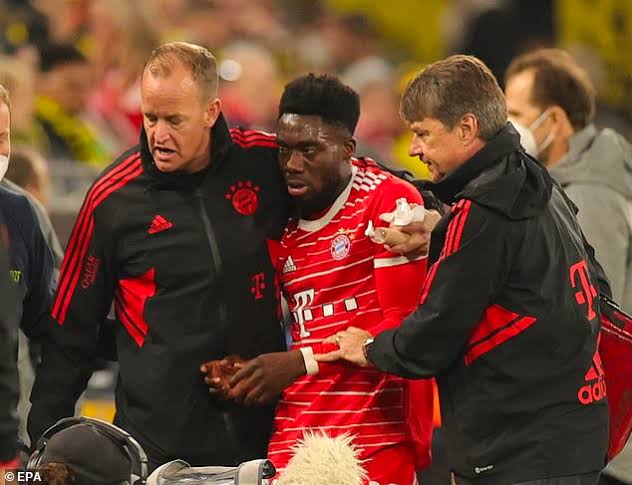 Bayern Munich stated that Davies was “caught in the face by the boot” of the Dortmund midfielder when he collided with Jude Bellingham just before halftime.