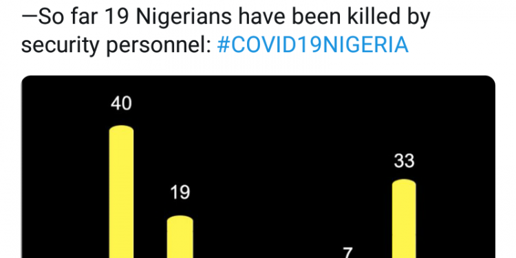 The international body announced the number via its Twitter handle and said: “We have been monitoring human rights violation on lockdown in the fight against #COVID?19: —So far 19 Nigerians have been killed by security personnel: #COVID19NIGERIA.”