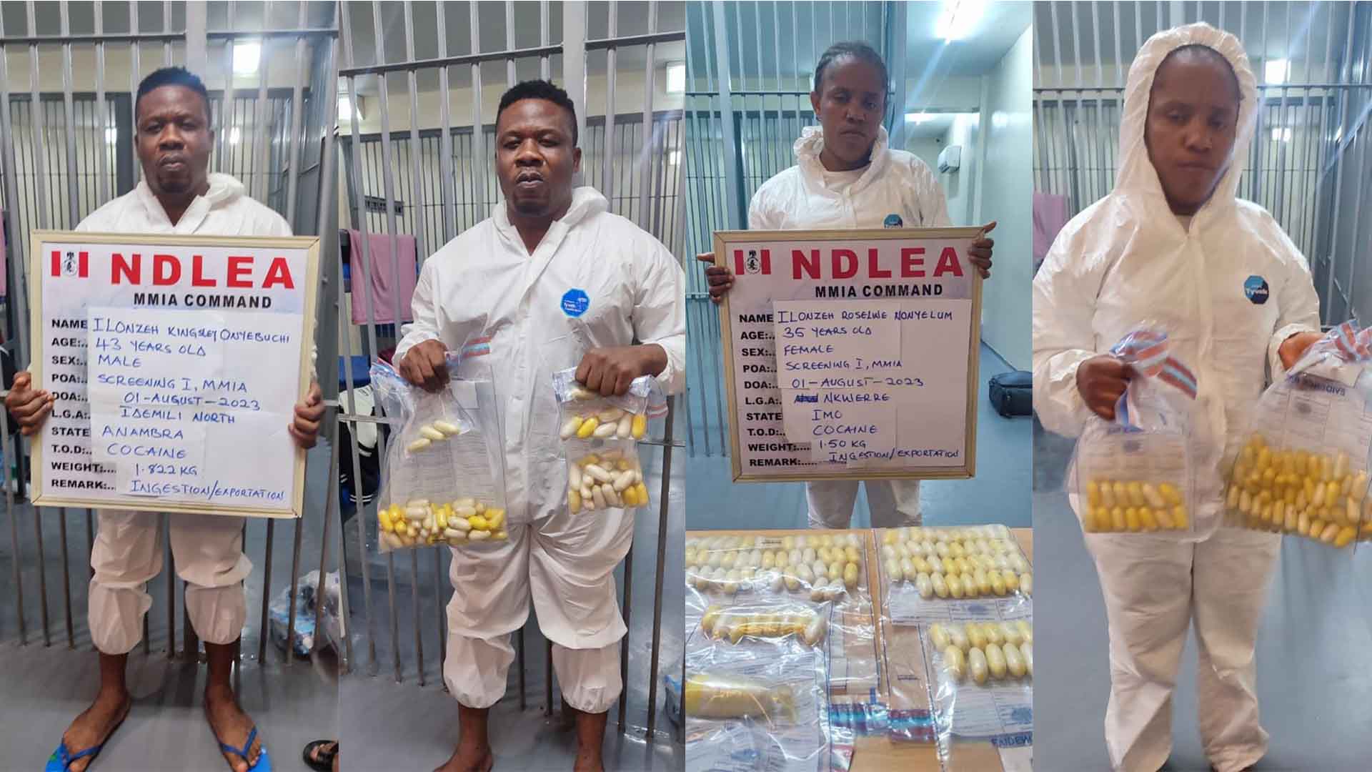 Operatives of the National Drug Law Enforcement Agency, NDLEA, have arrested a fake couple, Mr. Ilonzeh Kingsley Onyebuchi and Mrs. Ilonzeh Roseline Nonyelum purportedly going for medical treatment in India for ingesting 184 wraps of cocaine weighing 3.322 kilograms with 100grams of the drug also concealed in the woman’s private part.
