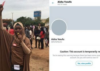 Aisha Yesufu, a co-founder of the Bring Back Our Girls (BBOG) campaign on Thursday had her Twitter account , ‘temporarily...