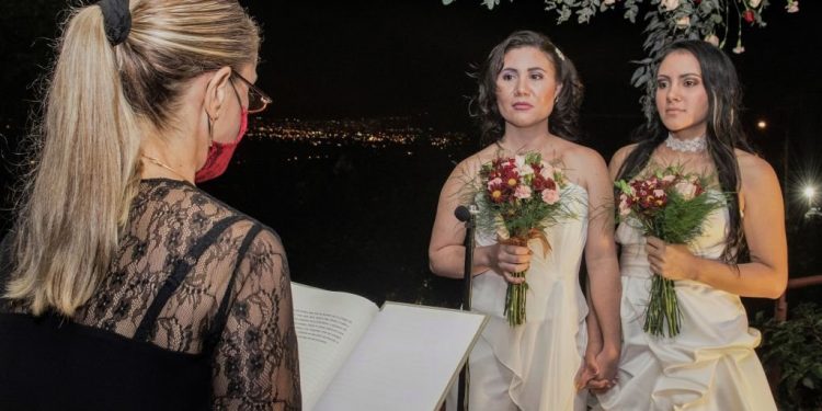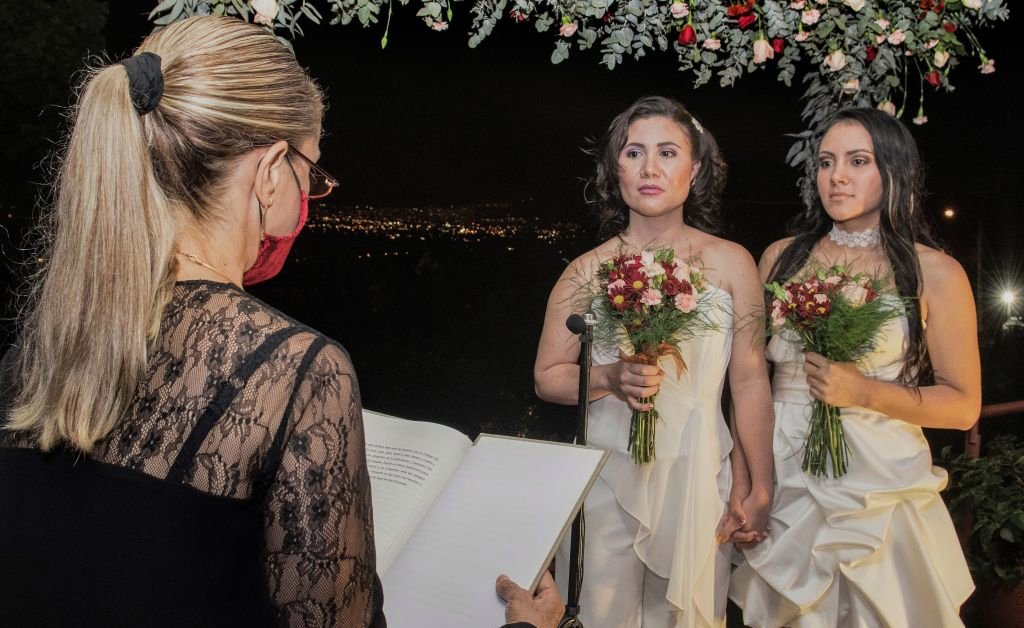 The first same-sex wedding has happened in Costa Rica after a court ruling was effected at midnight. While the plans of activists for a national celebration had to be deferred because of the coronavirus pandemic, a late-night night TV broadcast showcased the wedding ceremony of Alexandra Quiros and Dunia Araya. The guests in attendance cheered when the brides kissed.