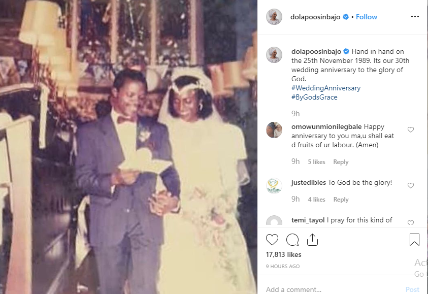 In her post she said, “Hand in hand on the 25th November 1989. Its our 30th wedding anniversary to the glory of God. #WeddingAnniversary #ByGodsGrace.”