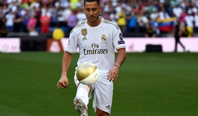 The 28-year-old Hazard was presented with the home shirt, which was without a number, by club president Florentino Perez, moments after the Belgian had delivered a brief statement to his expectant fans.