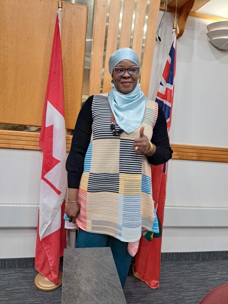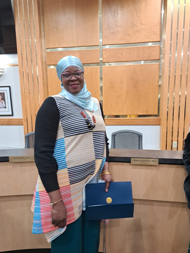 Mrs Haliru made history by becoming the first black woman to serve on Ingersoll Town Council.