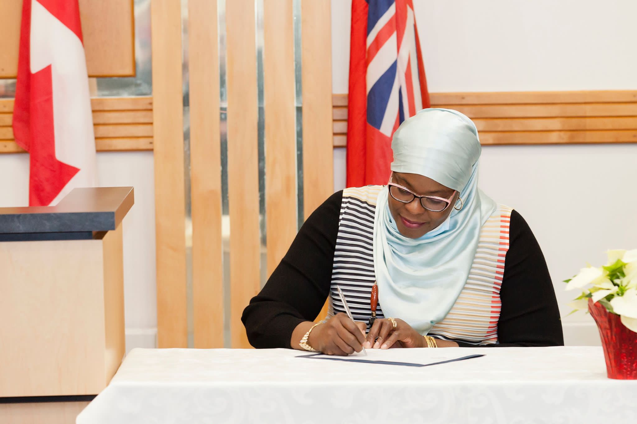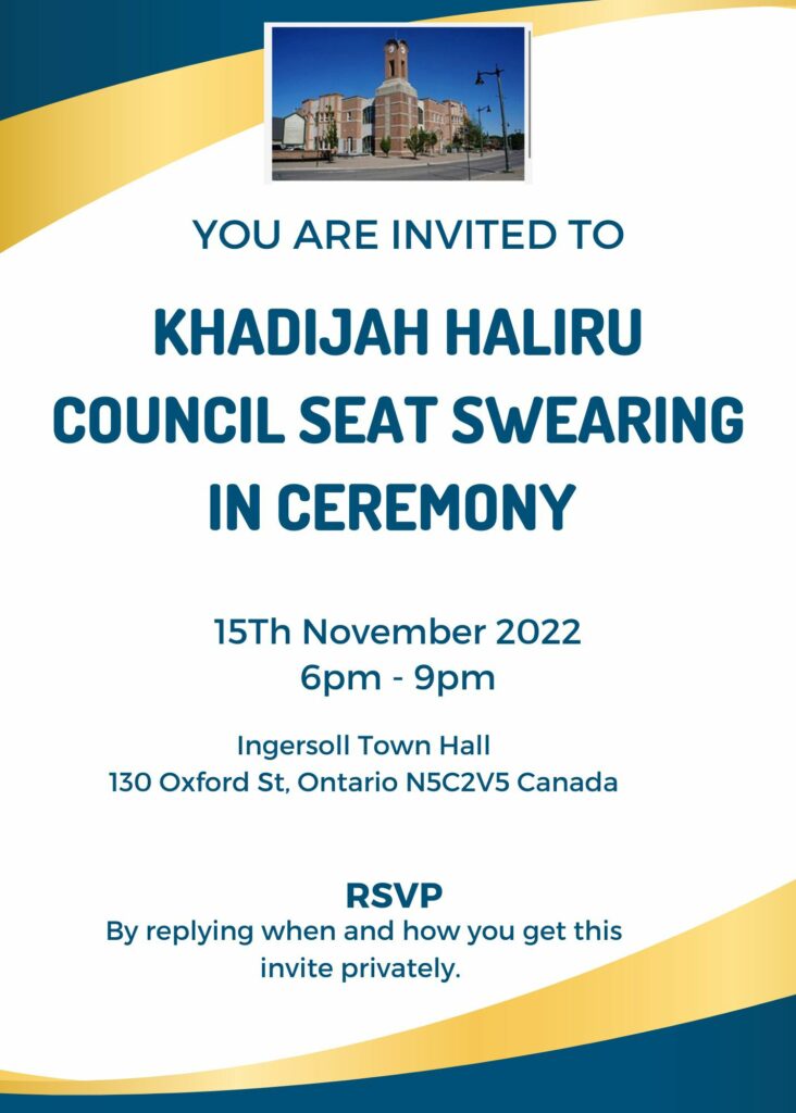 Nigerian-born Canadian, Khadijah Haliru, who emerged winner of the Ingersoll Town councillorship election in Oxford county, Ontario, Canada has been sworn in.