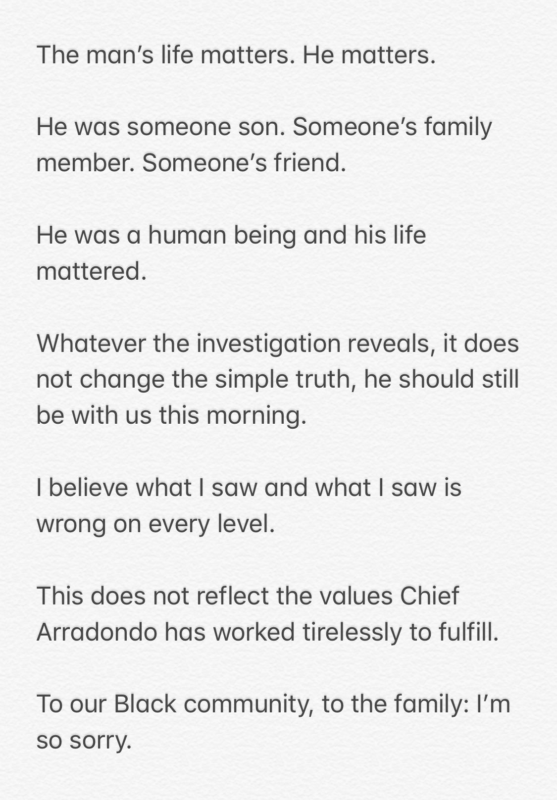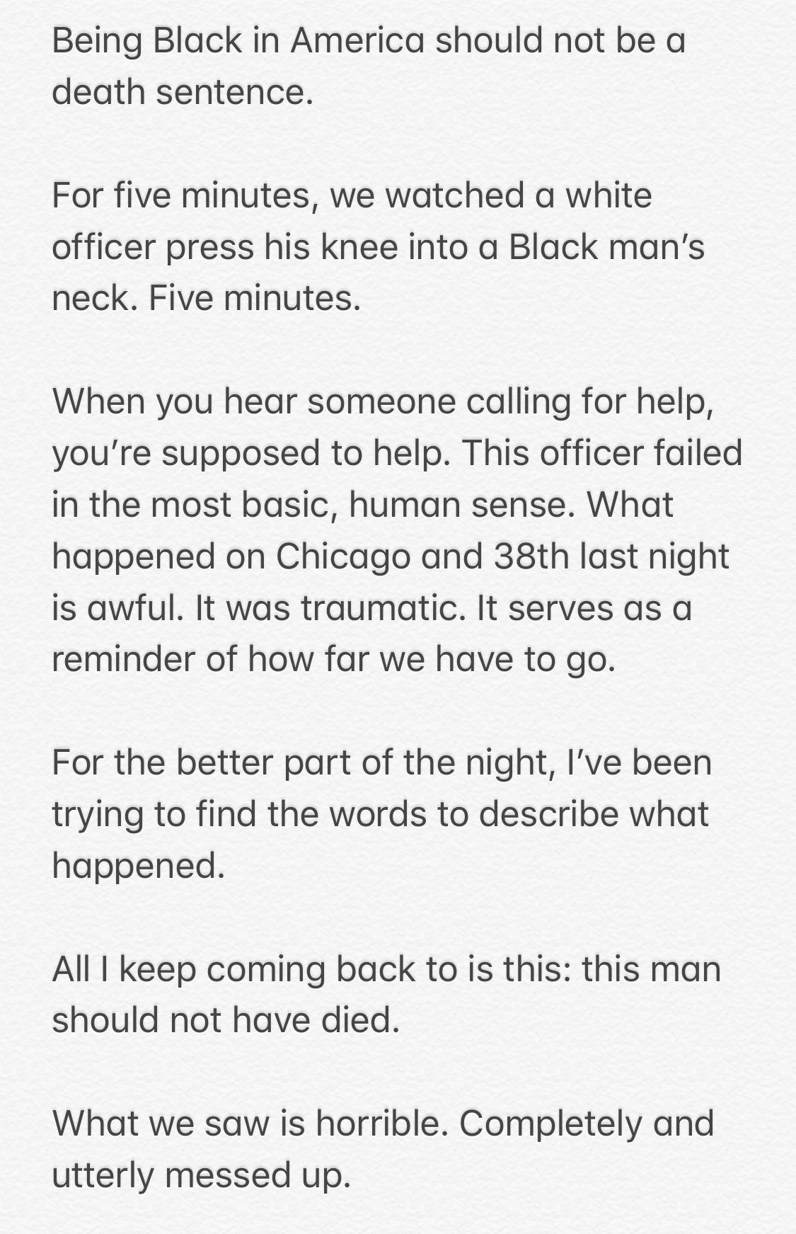 While talking during a press conference, Jacob Frey said: “Being Black in America should not be a death sentence. For five minutes, we watched as a White officer pressed his knee into the neck of a Black man. For five minutes.”