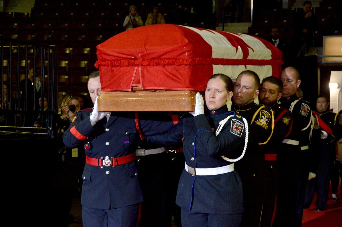 Dignitaries from all over Ontario and Canada, including Prime Minister Justin Trudeau and his wife, Sophie Gregoire-Trudeau, friends and McCallion’s family members gathered with several others inside the Paramount Fine Foods Centre in Mississauga to bid final farewell to the woman that served dynamically as Mayor of Mississauga for 36 years.
