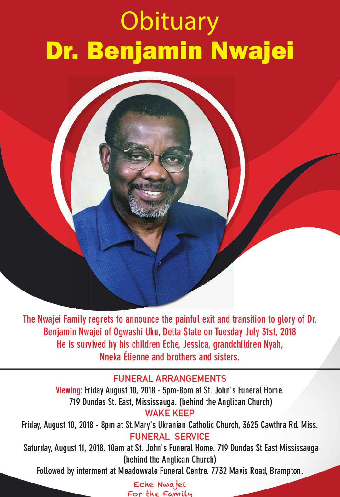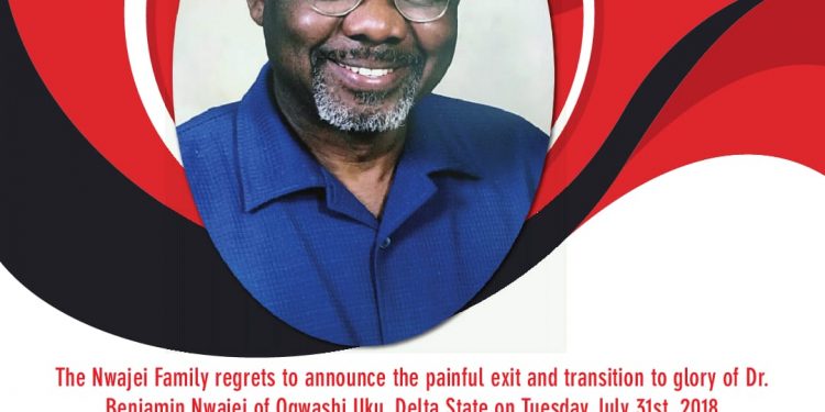 The Nwajei Family regrets to announce the painful exit and transition to glory of Dr. Benjamin Nwajei of gwashi Uku, Delta State on Tuesday. July 31st, 2018.