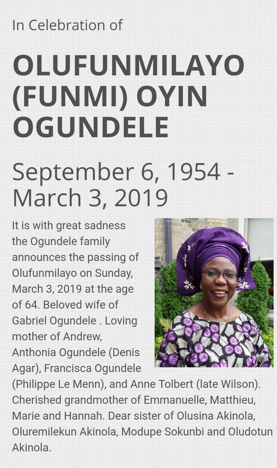 Obituary: Olufunmilayo (Funmi) Oyin Ogundele