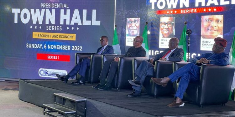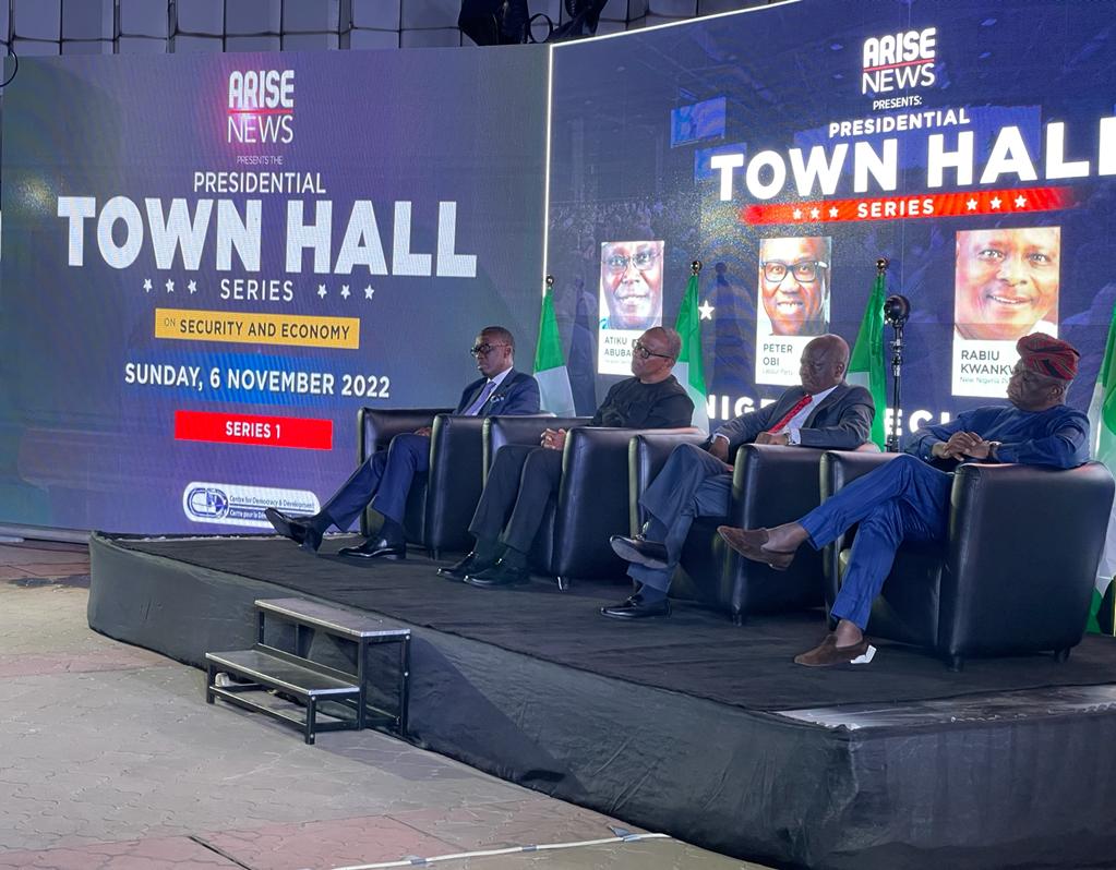 Labour Party’s Peter Obi, New Nigeria Peoples Party’s Rabiu Kwankwaso and Kola Abiola, the presidential candidate of the Peoples Redemption Party attended the debate which was organized by the Centre for Democracy and Development and Arise Television.