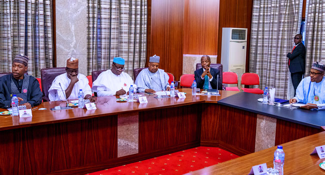 President Muhammadu Buhari on Friday met with All Progressives Congress (APC) governors at the presidential villa in Abuja.