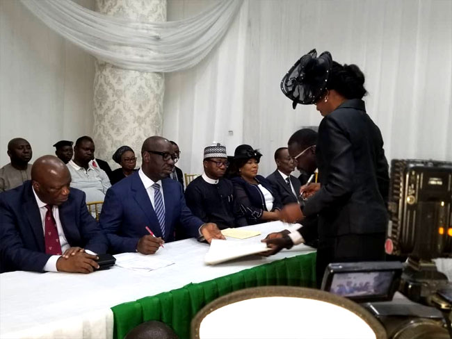 The swearing-in ceremony which held on Friday at the Banquet Hall of the Government House in Benin City, the Edo State capital had in attendance the state governor, Mr Godwin Obaseki, as well as top government officials and members of the judiciary in the state.