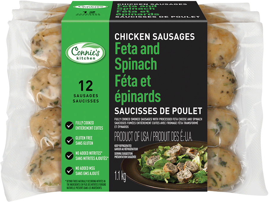 Connie’s Kitchen branded chicken sausages (specifically in the feta and spinach flavour) have been recalled by Health Canada, because of the potential of plastic pieces embedded inside the sausage.