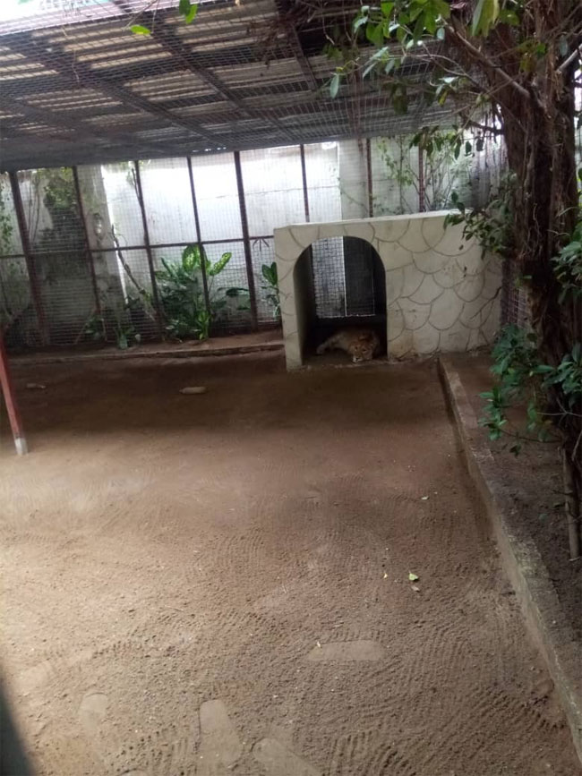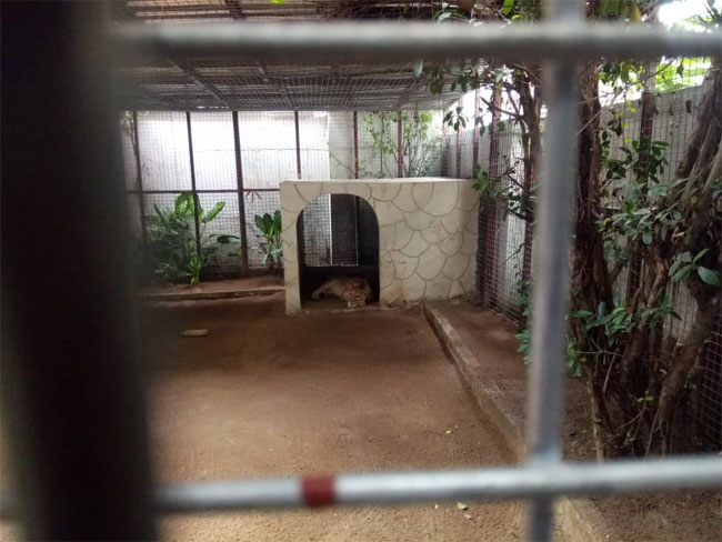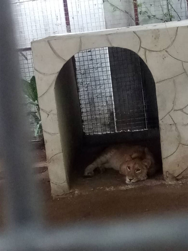 The lion said be used as a security watch dog is owned by a yet to be named Indian national, is caged at Number 229, Muri Okunola Street in Victoria Island.
