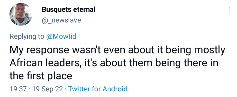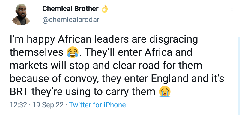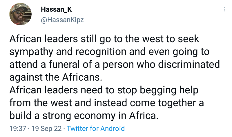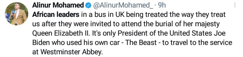 The mode of transportation for African leaders to the recent funeral of Queen Elizabeth II at Westminster Abbey has been generated reactions from Africans on Twitter.