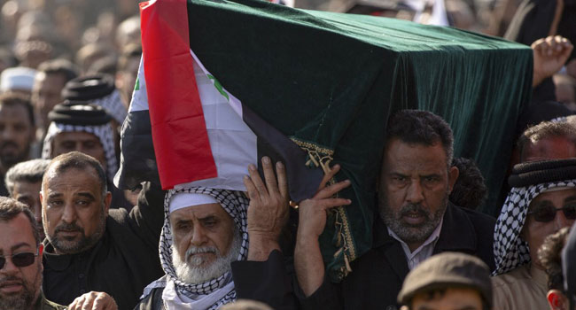 With them were the remains of Abu Mahdi al-Muhandis, the deputy commander of Iraq’s powerful Hashed al-Shaabi paramilitary umbrella group, who was also killed in the strike.