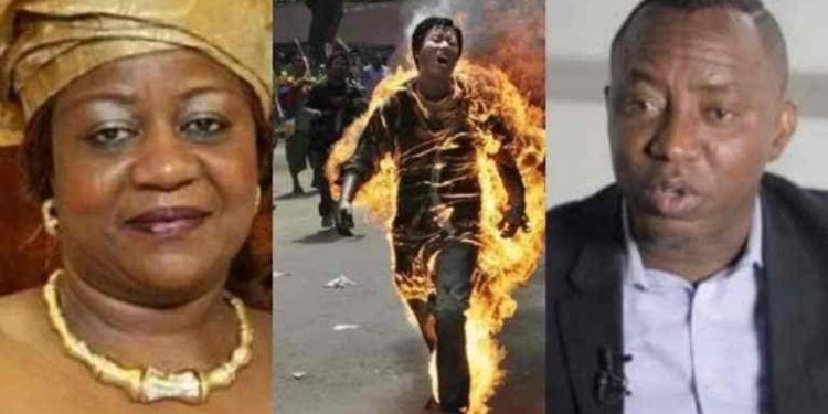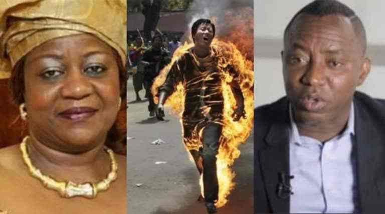Onochie, who has been severally involved in false claims, alleged that Sowore had threatened to set himself on fire in protest to President Buhari’s administration.