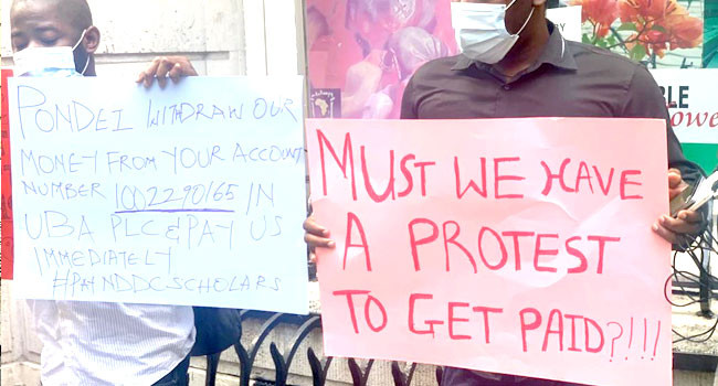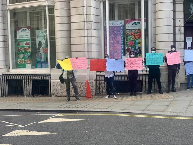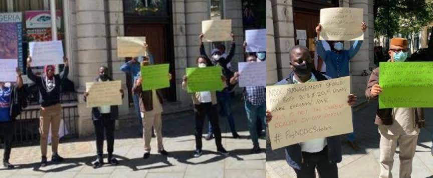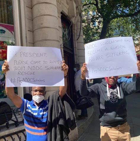 Nigerian students who are currently on the Niger Delta Development Commission (NDDC) scholarship program staged a protest in front of the Nigerian High Commission in the United Kingdom, over the commission’s failure to pay their tuition fees.
