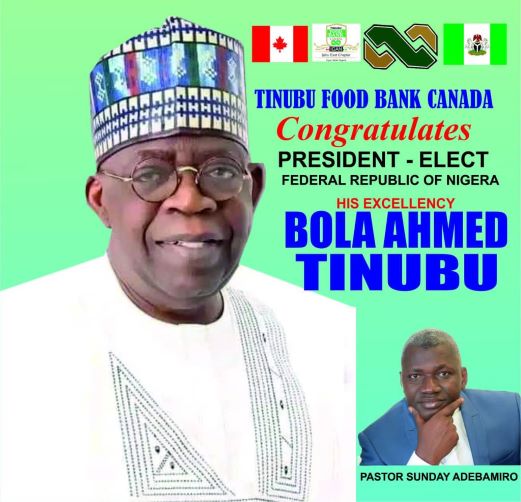 Tinubu Food Bank Canada congratulates Asiwaju Bola Ahmed Tinubu
