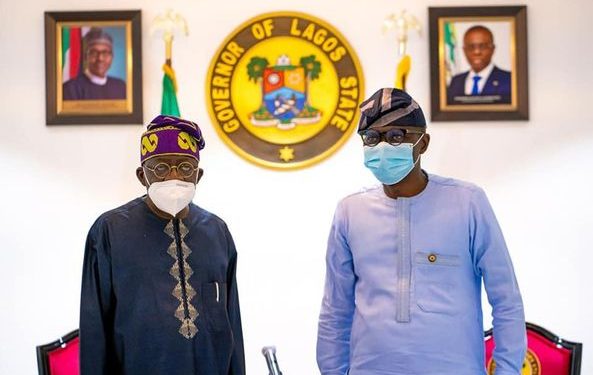 National Leader of the All Progressives Congress (APC) Asiwaju Bola Tinubu on Saturday, visited the Lagos State Governor, Babajide Sanwo-Olu to commiserate with him over the mammoth destruction properties and killings that resulted from the two-week long #EndSARS protest.