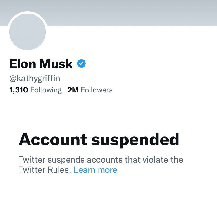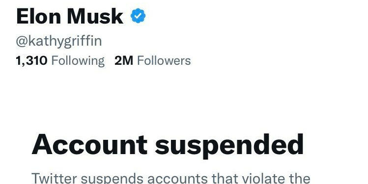 Twitter has suspended Kathy Griffin for impersonating Elon Musk, the platform’s new owner.