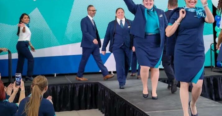 The Calgary-based carrier reveals that the new blue pantsuits, skirts and dresses with teal accents are meant to promote gender neutrality, so workers can choose the uniform that is most authentic and suitable to them.