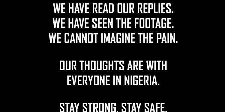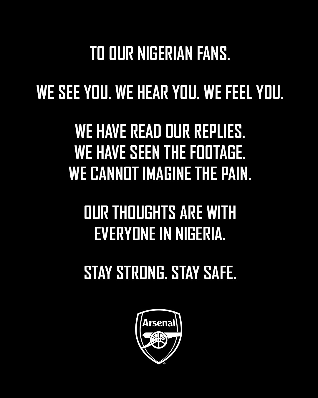 The club firther stated that their thoughts and prayer are with everyone in Nigeria and asked everyone to stay safe and strong.