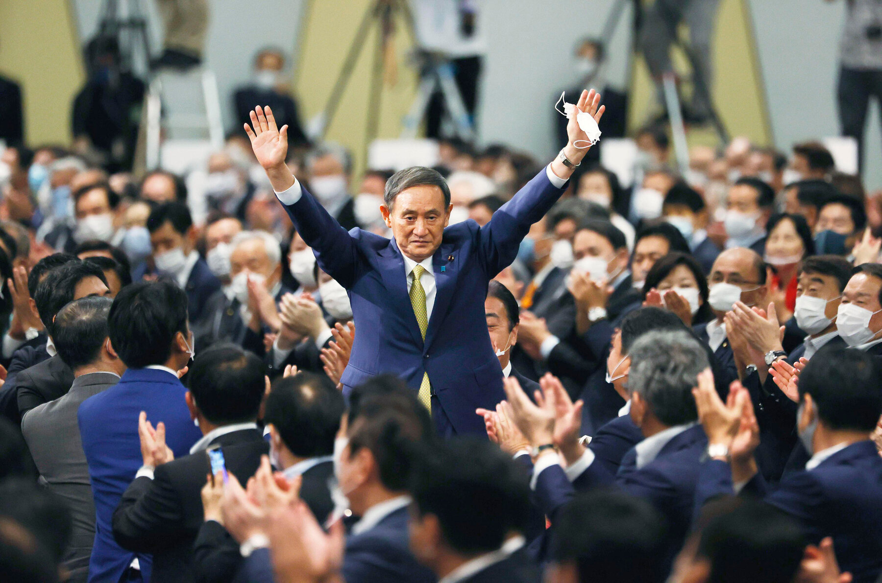 After his election as LDP leader, Suga promised to work hard for Japan.